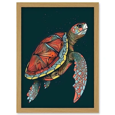 Artery8 Swimming Sea Turtle Modern Folk Art Illustration Artwork Framed Wall Print A4