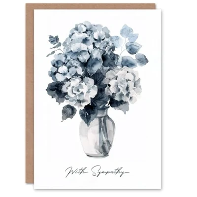 Artery8 Sympathy Card Greyscale Watercolour Flower Bouquet in Vase Blank Arty Art All Occasion Greeting