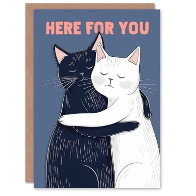 Artery8 Sympathy Card Here For You Black White Cats Hugging Sweet Blank Arty Art All Occasion Greeting