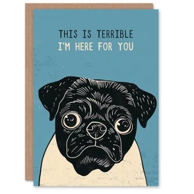 Artery8 Sympathy Card Here For You Boston Terrier Dog Lover Cute Pug Blank Arty Art All Occasion Greeting