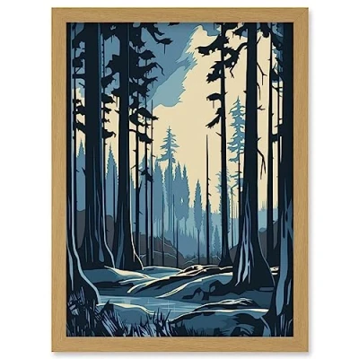 Artery8 Taiga Boreal Forest Winter Landscape Illustration Artwork Framed Wall Art Print A4