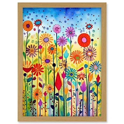 Artery8 Tall Mixed Flowers Folk Art Watercolour Painting Artwork Framed A3 Wall Print