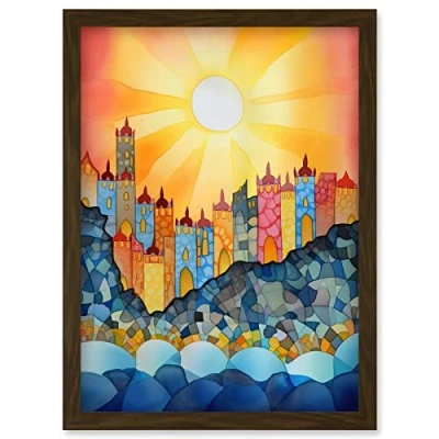 Artery8 Tangier Costal Cliff Sunrise Folk Art Artwork Framed Wall Print A4