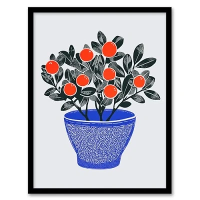 Artery8 Teaberry Red Berry Potted Plant Blue Bright Living Room Artwork Framed Wall Art Print A4