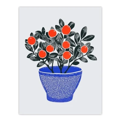 Artery8 Teaberry Red Berry Potted Plant Blue Bright Living Room Large Wall Art Poster Print Thick Paper 18X24 Inch