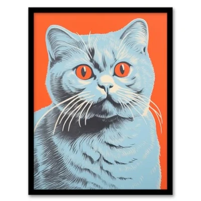 Artery8 Teal And Coral Cat Screen Print Risograph Artwork Spot Block Colour Duotone Retro Riso Interior Design Scottish Fold Framed Wall Art A4