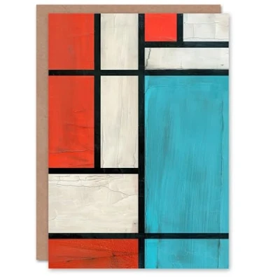 Artery8 Teal Coral Abstract Composition Artwork Geometric Greeting Birthday Card Him Her All Blank