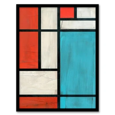 Artery8 Teal Coral Abstract Composition Artwork Geometric Living Room Framed Wall Art Print A4