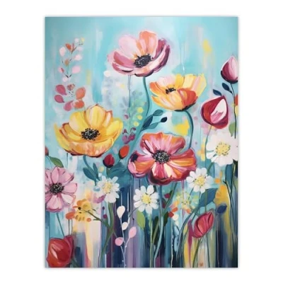 Artery8 Teal Pink Yellow Flowers Elegant Watercolour Artwork Wildflower Meadow Large Wall Art Poster Print Thick Paper 18X24 Inch