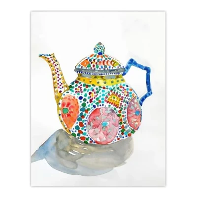 Artery8 Teapot Colourful Patterns Watercolour Folk Art Kitchen Large Wall Poster Print Thick Paper 18X24 Inch