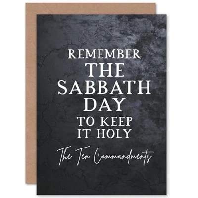 Artery8 Ten Commandments Remember The Sabbath Christian Bible Verse Quote Scripture Typography Sealed Greeting Card Plus Envelope Blank inside