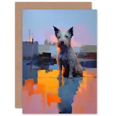 Artery8 Terrier Sunset Dog Lover for Him or Her Man Woman Birthday Thank You Get Well Soon Blank Art Greeting Card