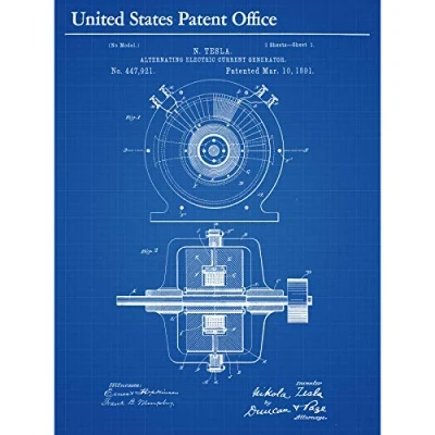 Artery8 Tesla Alternating Electric Current Generator 1891 Patent Premium Wall Art Canvas Print 18X24 Inch