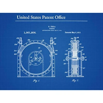 Artery8 Tesla Turbine 1913 Vintage Patent Plan Large Wall Art Poster Print Thick Paper 18X24 Inch