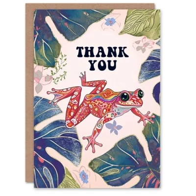 Artery8 Thank You Card Cute Colourful Jungle Frog Bright Folk Art For Her Gran Sister Niece Daughter Wife Woman Greeting