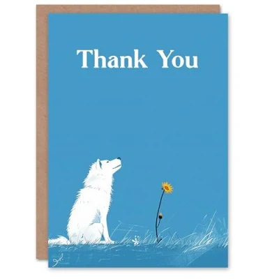 Artery8 Thank You Card Sweet White Husky Dog Flower Blue Sky Cute For Her Gran Sister Niece Daughter Wife Woman Greeting