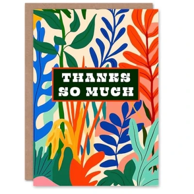 Artery8 Thank You Card Thanks So Much Plant Lover Bold Botanical Leaves Blank For Him Or Her Art Greeting