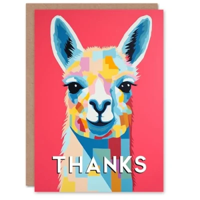 Artery8 Thank You Greeting Card Colourful Geometric Happy Llama For Him Her