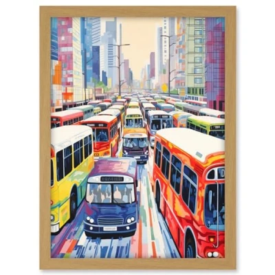 Artery8 The Bus Lane by Adrienne Finch Busy Cityscape Traffic Artwork London New York LA Framed A3 Wall Art Print