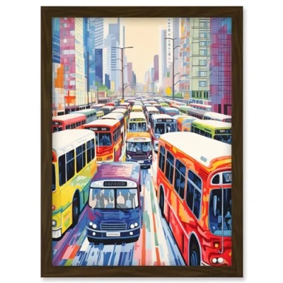 Artery8 The Bus Lane by Adrienne Finch Busy Cityscape Traffic Artwork London New York LA Framed Wall Art Print A4