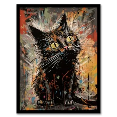 Artery8 The Curious Black Cat Painting By Tom Jones Artwork Framed Wall Art Print A4