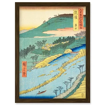 Artery8 the Currents Around Weir Chikugo Province Utagawa Hiroshige Japanese Woodblock Artwork Framed Wall Art Print A4