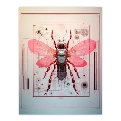 Artery8 The Fly Spy Robot Hybrid Schematic Blueprint Futuristic Secret Complex Arcane Manuscript Gift For Him Man Cave Extra Large XL Wall Art Poster Print