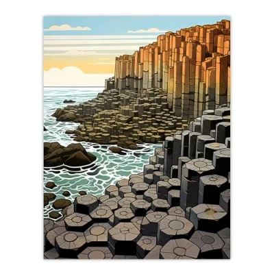Artery8 The Giants Causeway Artwork Ireland Coastal Cliffs Volcanic Formation Irish Sea Extra Large XL Wall Art Poster Print