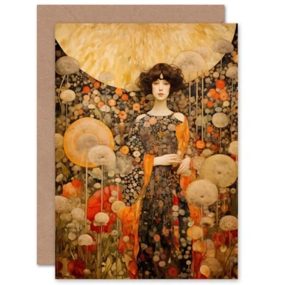 Artery8 the Girl in Dandelion Dream for Wife Her Mum Sister Daughter Mom Gran Nan Birthday Thank You Congratulations Blank Art Greeting Card