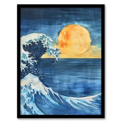 Artery8 The Great Wave Sunrise Seascape Watercolour Living Room Artwork Framed Wall Art Print A4