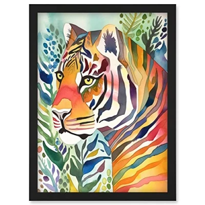 Artery8 The Hidden Tiger Folk Art Artwork Framed Wall Print A4