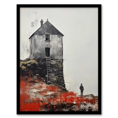 Artery8 the House on Cliff Autumn Rural Landscape Artwork Framed Wall Art Print A4