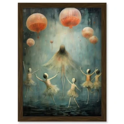 Artery8 The Jellyfish Ballet Whimsical Surreal Underwater Dance Artwork Framed A3 Wall Art Print