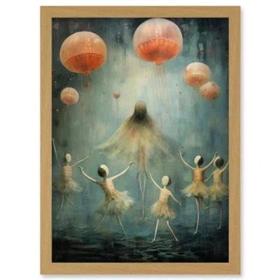 Artery8 The Jellyfish Ballet Whimsical Surreal Underwater Dance Artwork Framed Wall Art Print A4