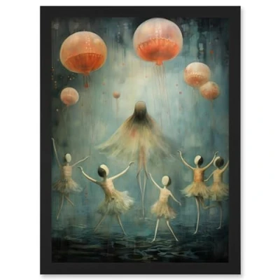 Artery8 The Jellyfish Ballet Whimsical Surreal Underwater Dance Artwork Framed Wall Art Print A4