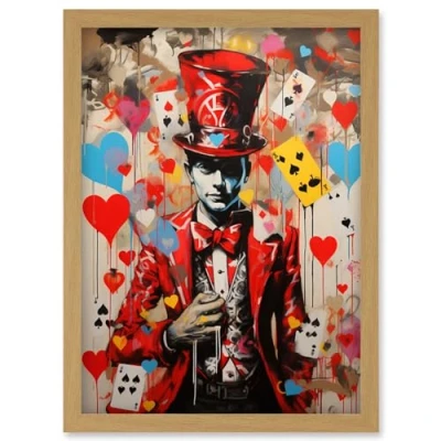 Artery8 The King of Hearts Modern Magician Magical Artwork Playing Cards Framed Wall Art Print A4