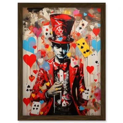 Artery8 The King of Hearts Modern Magician Magical Artwork Playing Cards Framed Wall Art Print A4