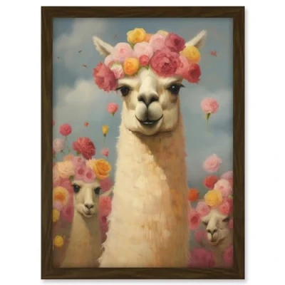 Artery8 The Llama Wedding Rose Bloom Flower Headdress Fun Artwork Kids Bedroom Framed A3 Wall Art Print
