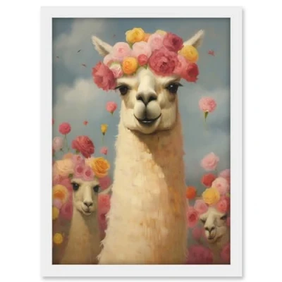 Artery8 The Llama Wedding Rose Bloom Flower Headdress Fun Artwork Kids Bedroom Framed A3 Wall Art Print