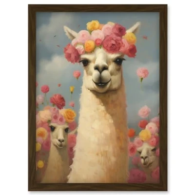 Artery8 The Llama Wedding Rose Bloom Flower Headdress Fun Artwork Kids Bedroom Framed Wall Art Print A4
