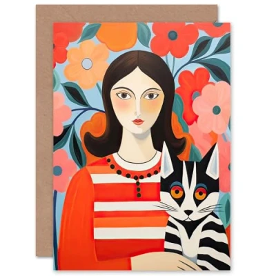 Artery8 The Matisse Moggie Cat Mum Fun Bright for Wife Her Sister Daughter Mom Gran Nan Birthday Thank You Congratulations Blank Art Greeting Card