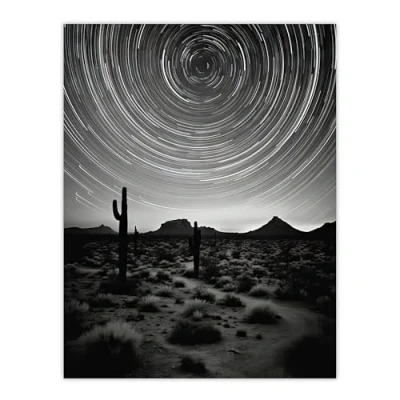 Artery8 The Milky Way Time Lapse Star Trails Stars Tracing Their Journey Across Black White Cactus Extra Large XL Wall Art Poster Print
