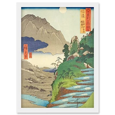 Artery8 the Moon Reflected in Sarashina Paddy fields, Mount Kyodai Shinano Province Utagawa Hiroshige Japanese Woodblock Artwork Framed Wall Art Print A4