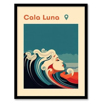 Artery8 the Seaside Calls Cala Luna Beach Sardinia Italy Modern Woman of Waves Sea Siren Ocean Artwork Framed Wall Art Print A4