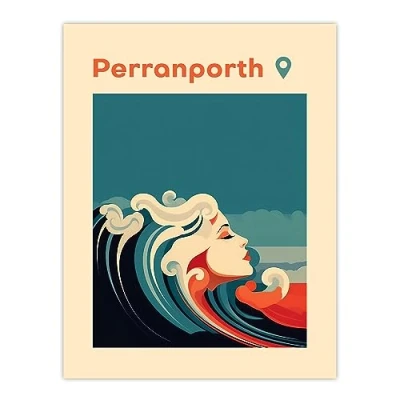Artery8 the Seaside Calls Perranporth Beach England UK Modern Woman of Waves Sea Siren Ocean Extra Large XL Wall Art Poster Print