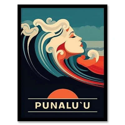 Artery8 the Seaside Calls Punaluu Beach Hawaii USA Sunset Woman of Waves Sea Siren Ocean Artwork Framed Wall Art Print A4