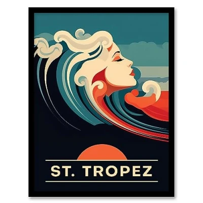 Artery8 the Seaside Calls St Tropez Beach France Sunset Woman of Waves Sea Siren Ocean Artwork Framed Wall Art Print A4