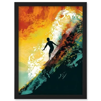 Artery8 The Silhouette of a Surfer Riding Big Wave Artwork Framed Wall Art Print A4