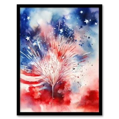 Artery8 The Stars And Stripes Salute Abstract Watercolour 4th July Independence Day USA Fireworks Artwork Framed Wall Art Print A4
