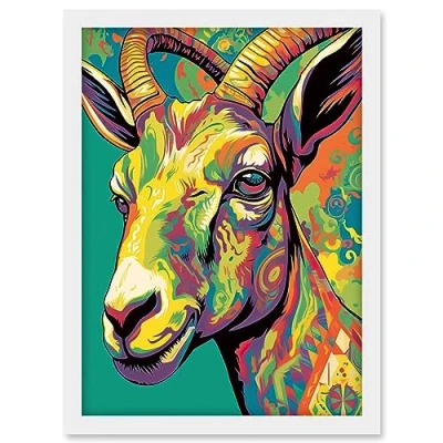 Artery8 The Trippy Goat Psychedelic Portrait Vibrant Colourful Patterns Modern Pop Art Artwork Framed A3 Wall Print